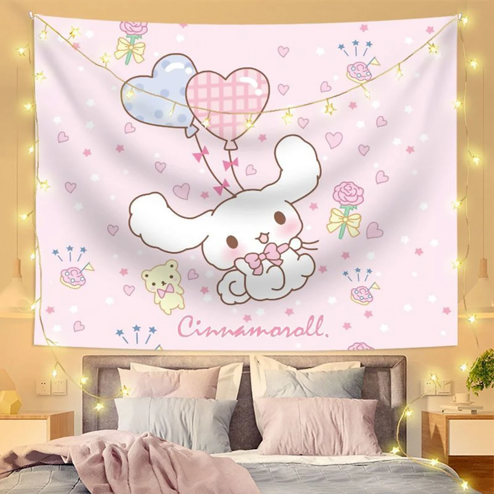 Tapisserie Cinnamoroll – Décoration de rêve pour une pièce confortable, tissu de fond pour salon et chambre à coucher, sans lumières