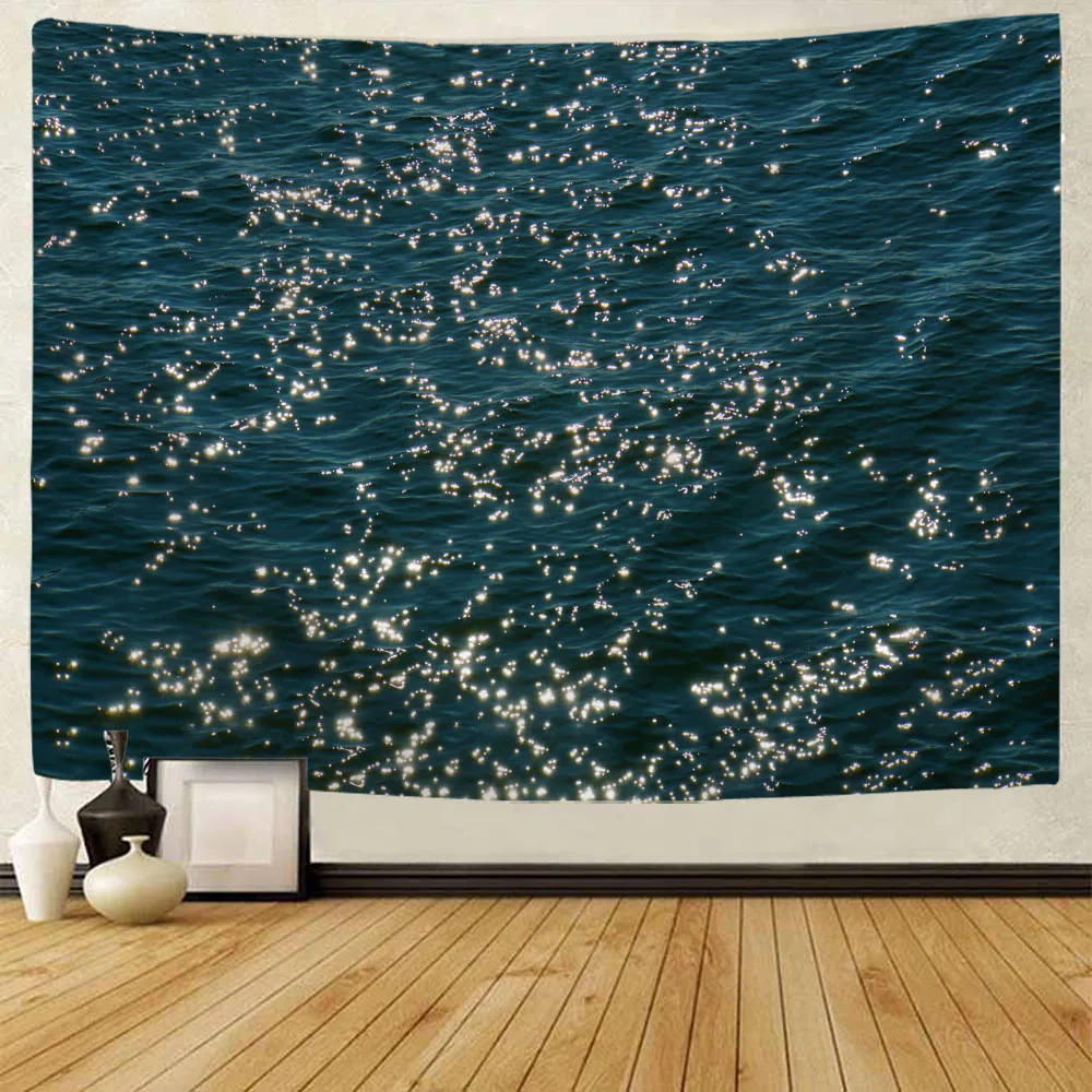 Tapisserie de mer scintillante, tissu mural suspendu, décoration murale de chambre à coucher, tapis de pique-nique en plein air, draps de plage