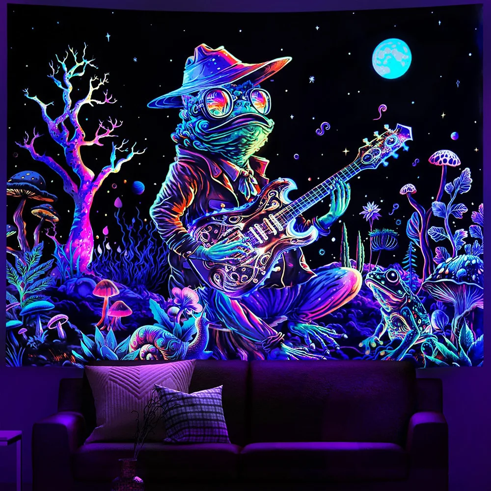 Tapisserie extraterrestre réactive UV à lumière noire, Hippie, hip hop, fluorescente, psychédélique, tenture murale d’astronaute, pour décoration de chambre à coucher