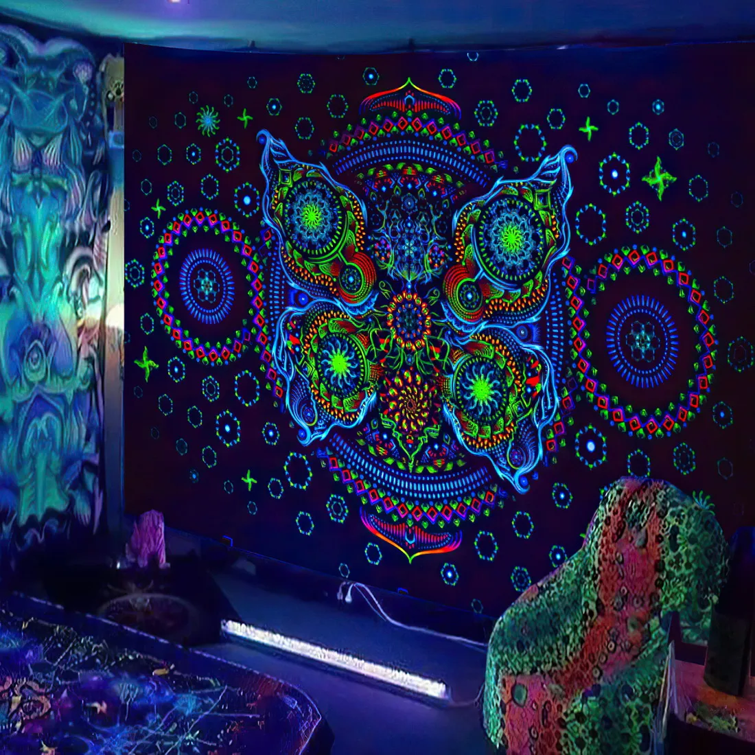 Tapisserie murale Hippie suspendue, esthétique, lumière noire, psychédélique, pour la maison, UV