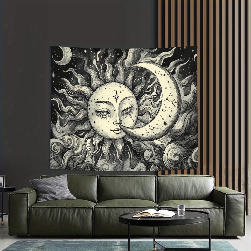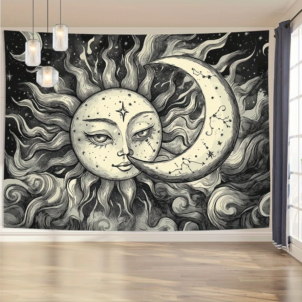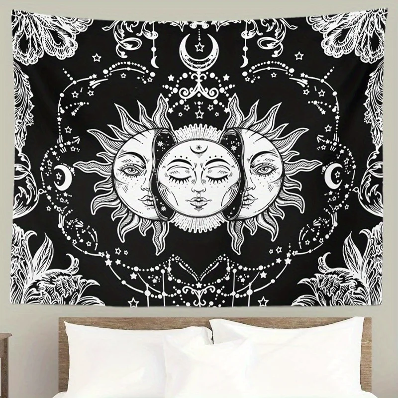 Tapisserie mystique soleil et lune, tenture murale esthétique Dark Soul, parfaite pour la décoration de la chambre à coucher, décoration murale de la chambre à coucher