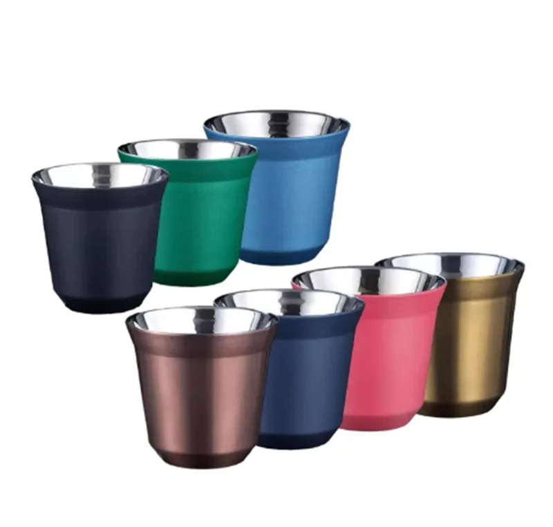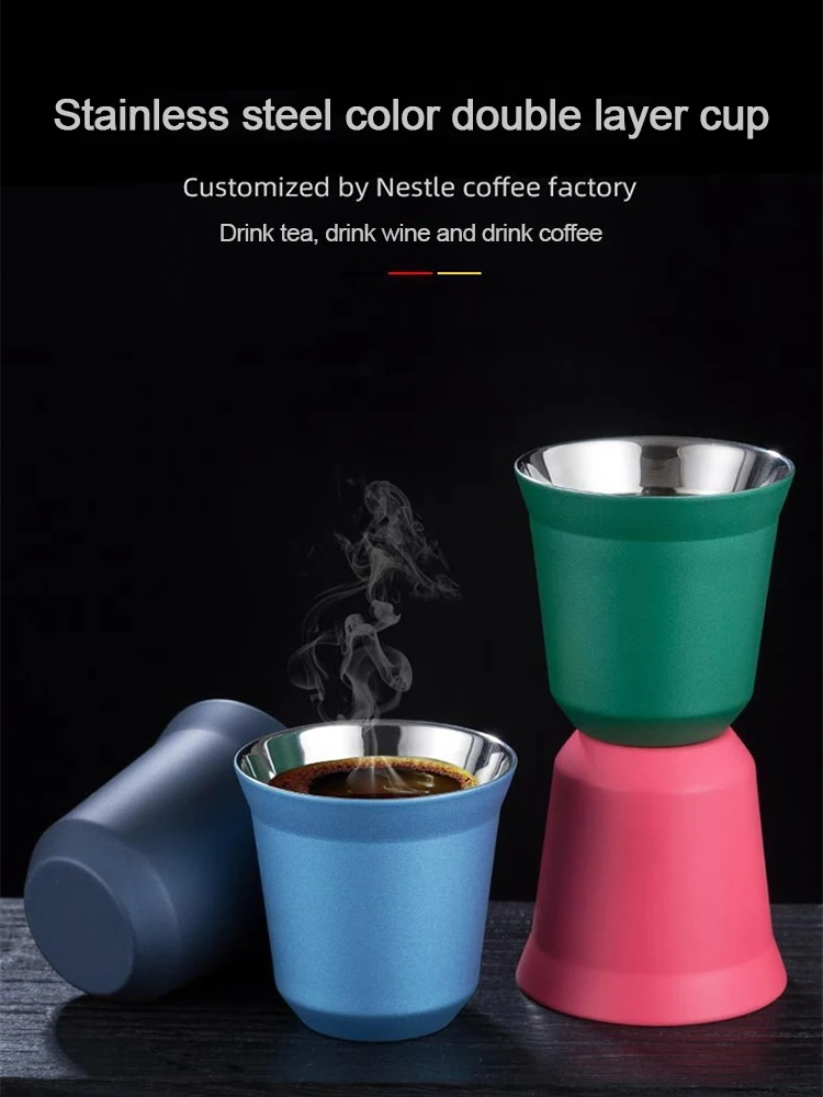 Tasses à expresso en acier inoxydable de 80ML, café, lait, eau, boisson, petit déjeuner, isolation 304, Double paroi, Texture lavable au lave-vaisselle